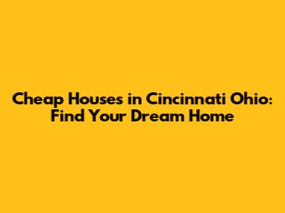 Cheap Houses In Cincinnati Ohio: Find Your Dream Home