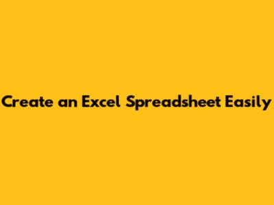 Create An Excel Spreadsheet Easily