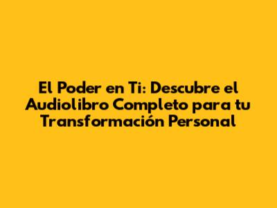 El Poder En Ti: Audiolibro Completo Para Tu Transformación