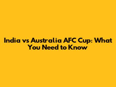 India Vs Australia AFC Cup: What You Need To Know