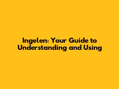 Ingelen: Your Guide To Understanding And Using
