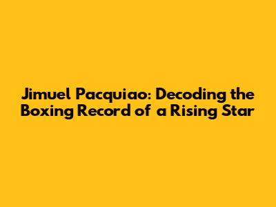 The Boxing Record of Jimuel Pacquiao: A Closer Look