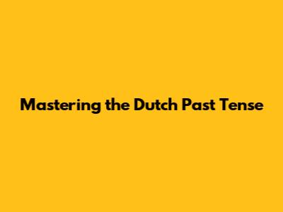 Mastering The Dutch Past Tense