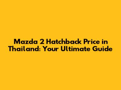 Mazda 2 Hatchback Price In Thailand: A Comprehensive Guide
