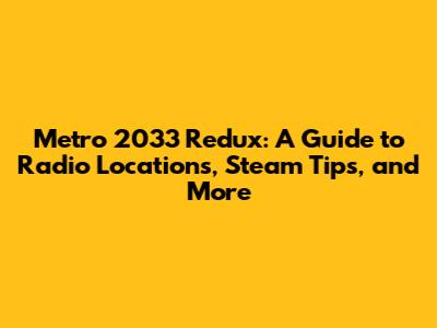 Hey guys! Today, we're diving deep into the atmospheric world of Metro 2033 Redux, focusing on those pesky radio locations and providing some essential Steam tips to enhance your gameplay. Whether you're a seasoned veteran or a newbie just stepping into the Moscow Metro, this guide has something for everyone. Let's get started!
