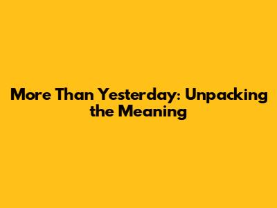 More Than Yesterday: Unpacking The Meaning
