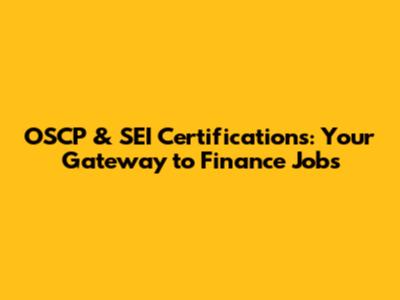 OSCP & SEI Certifications: Your Gateway To Finance Jobs