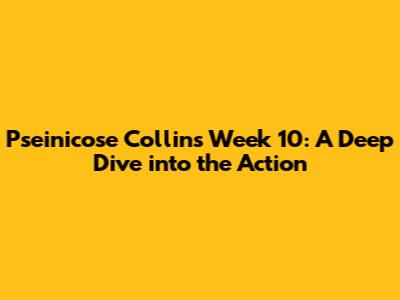 Pseinicose Collins Week 10: Game Recap And Analysis