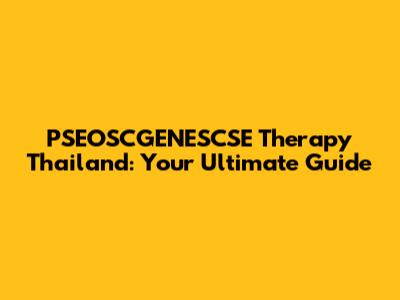 PSEOSCGENESCSE Therapy In Thailand: A Comprehensive Guide