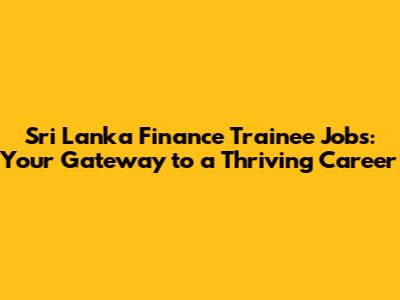 Sri Lanka Finance Trainee Jobs: Your Career Launchpad