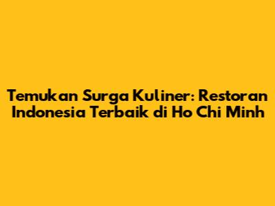 Guys, kalau kalian lagi di Ho Chi Minh dan kangen sama masakan Indonesia yang ngangeni, pas banget nih! Di kota yang sibuk ini, ternyata banyak banget lho restoran Indonesia yang siap memanjakan lidah kalian. Mulai dari rendang yang juara sampai sate yang bikin nagih, semua ada! Yuk, kita explore bareng-bareng restoran Indonesia terbaik yang wajib kalian coba saat berada di Ho Chi Minh. Dijamin, perut kenyang, hati senang!