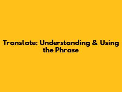 Translate: Understanding & Using The Phrase