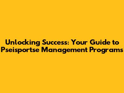 Unlocking Success: Your Guide To Pseisportse Management Programs