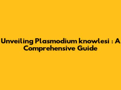 Unveiling *Plasmodium Knowlesi*: A Comprehensive Guide