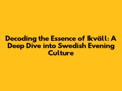 Alright, let's get a little deeper, guys. What is the cultural significance of "ikväll"? It's not just a word; it's a window into the Swedish way of life, reflecting values, traditions, and the overall rhythm of the day. In this section, we'll go beyond the literal meaning and explore the cultural connotations that make “ikväll” so special. "Ikväll" reflects a cultural appreciation for balance, a value placed on spending time with loved ones, and embracing the simple joys of life. Let's explore those values to understand how this word can impact people and the general atmosphere in Sweden.